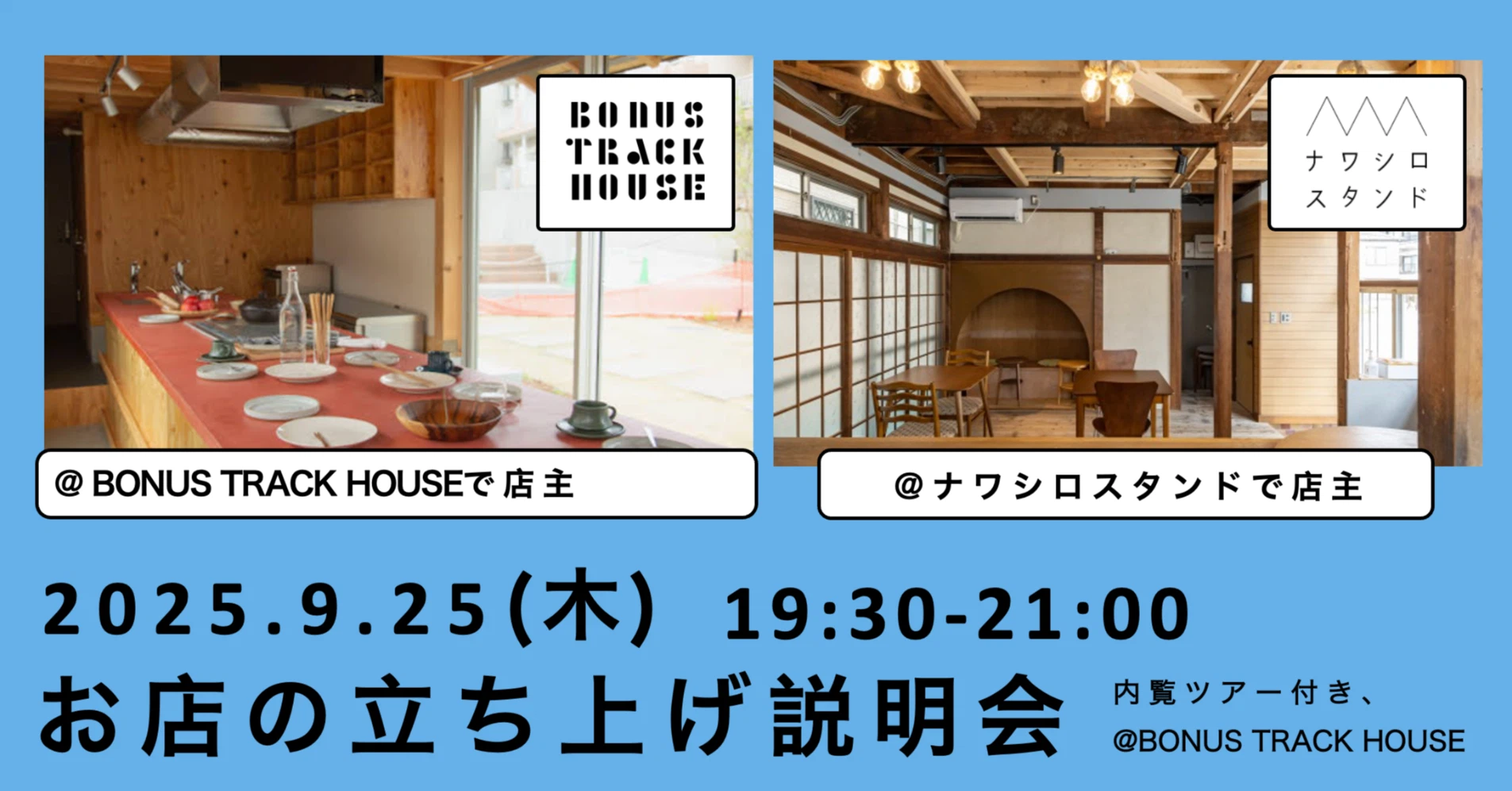 【終了しました】9/25(木)内覧ツアー付きお店の立ち上げ説明会開催@BONUS TRACK HOUSE