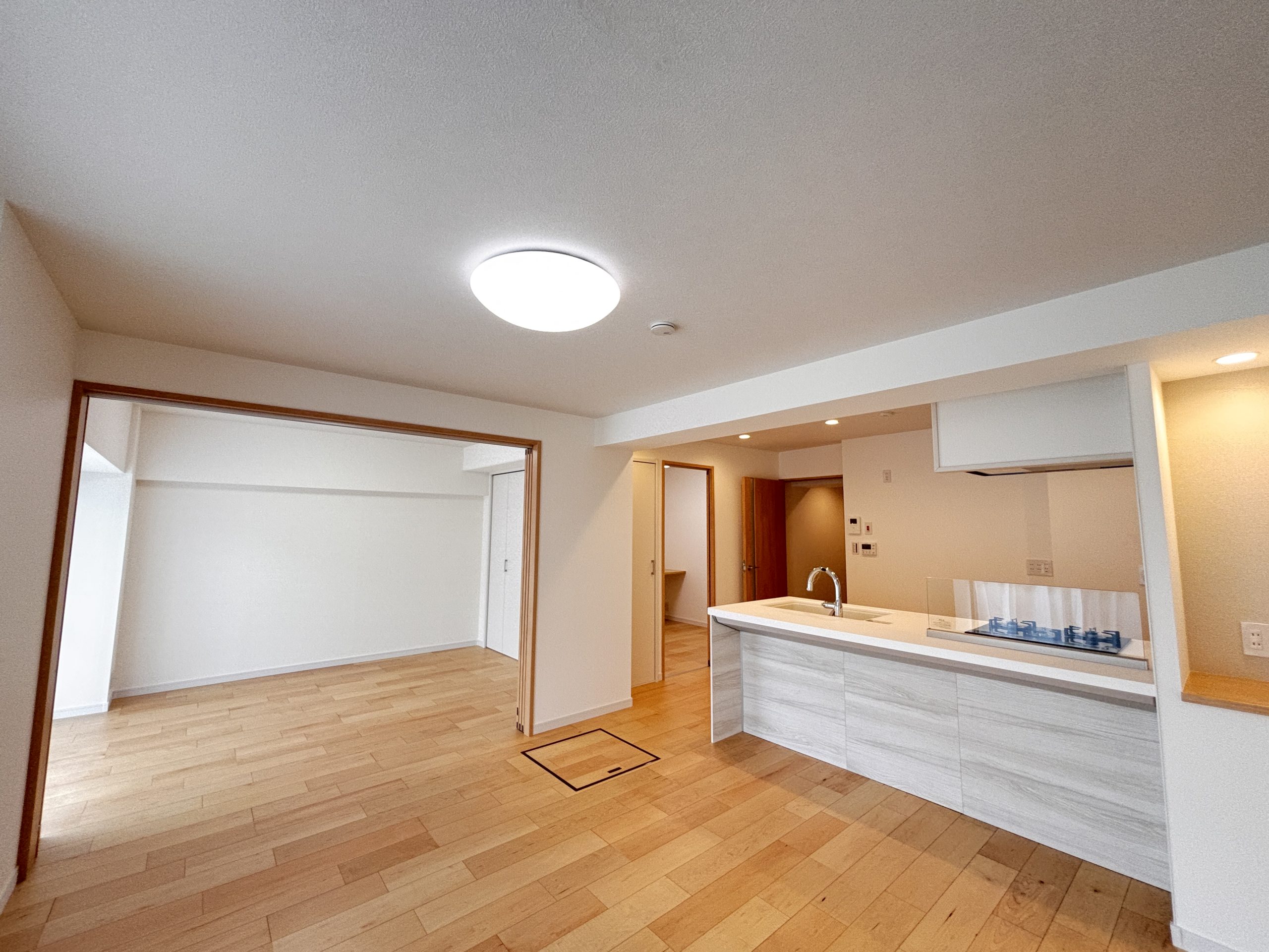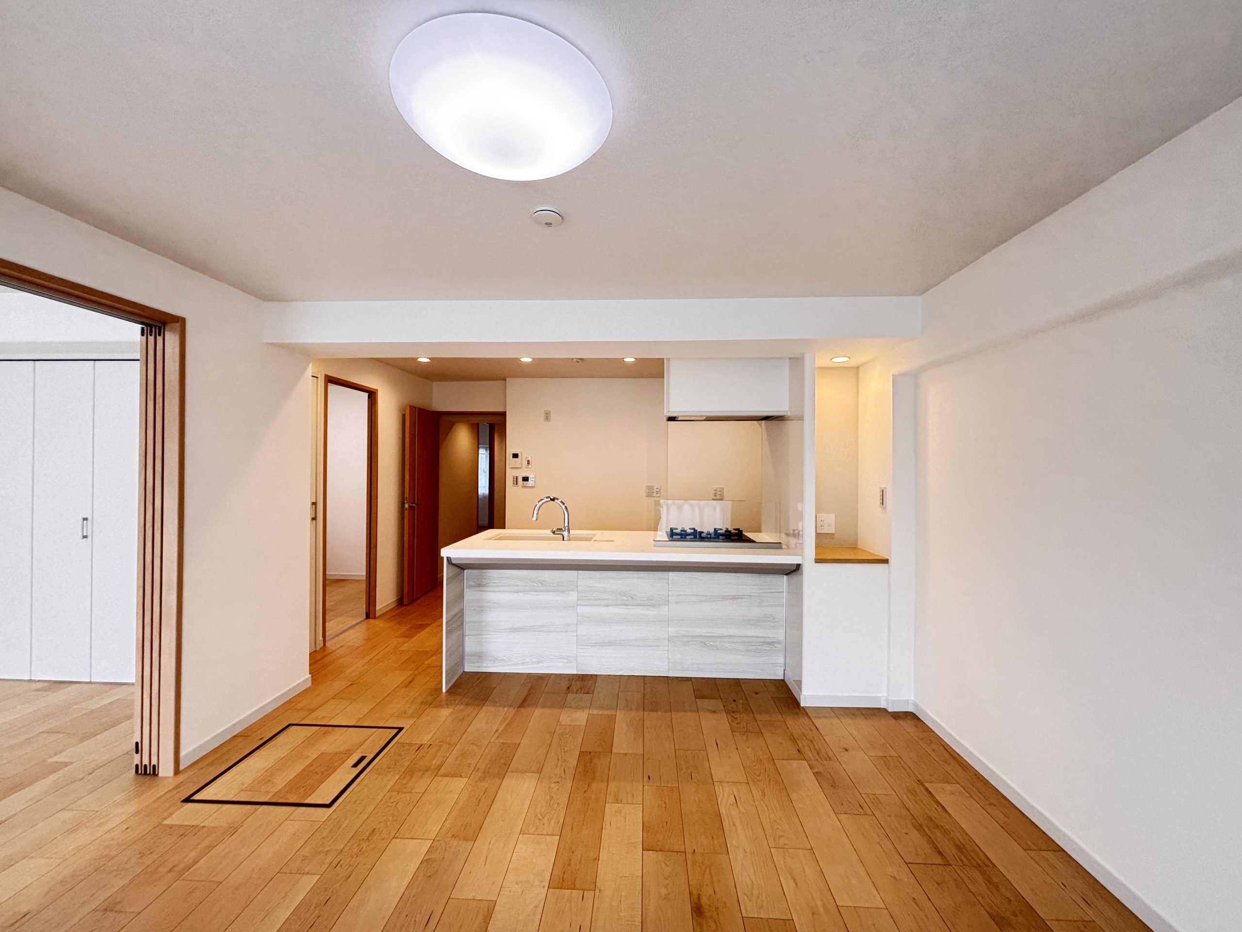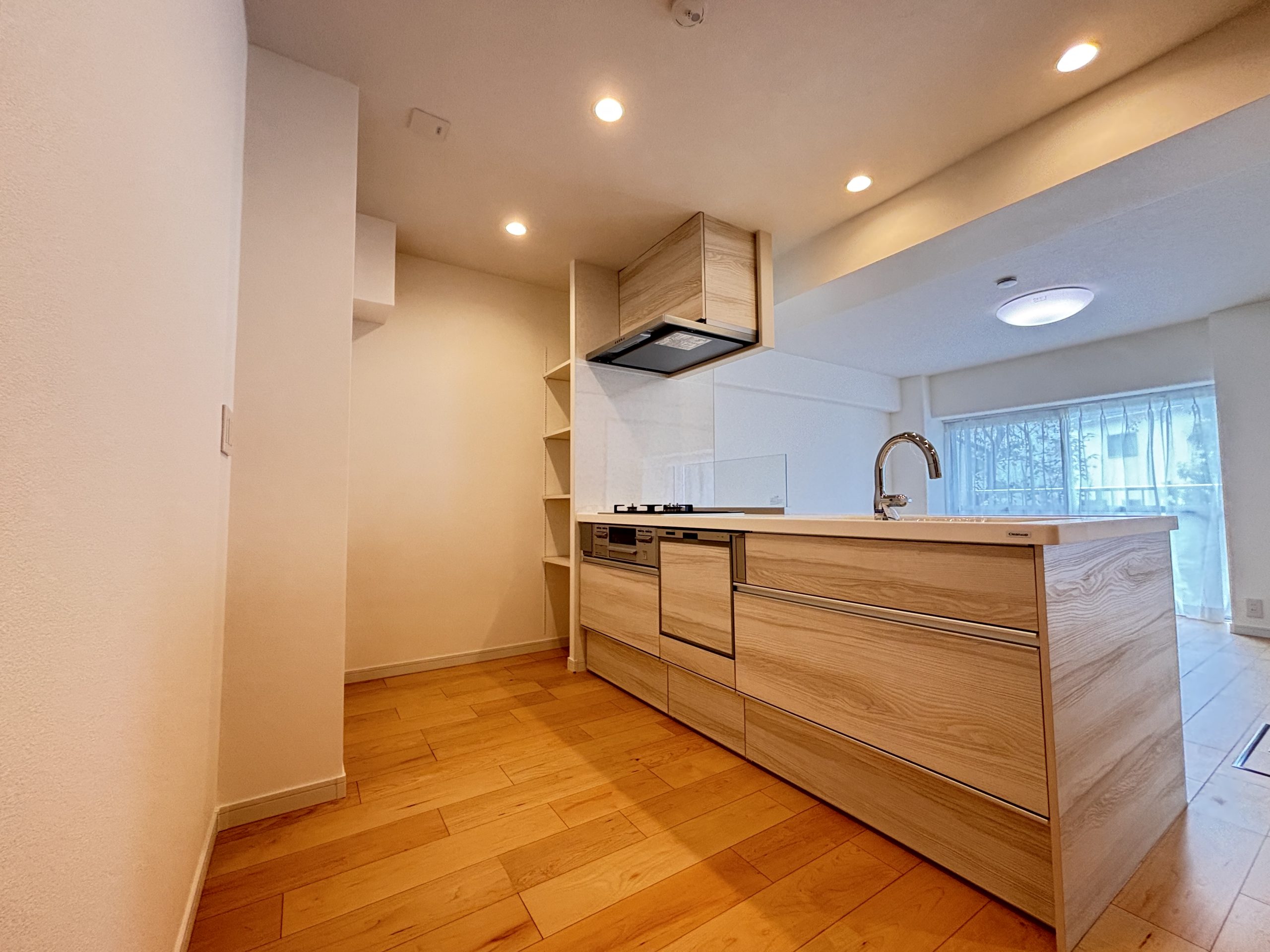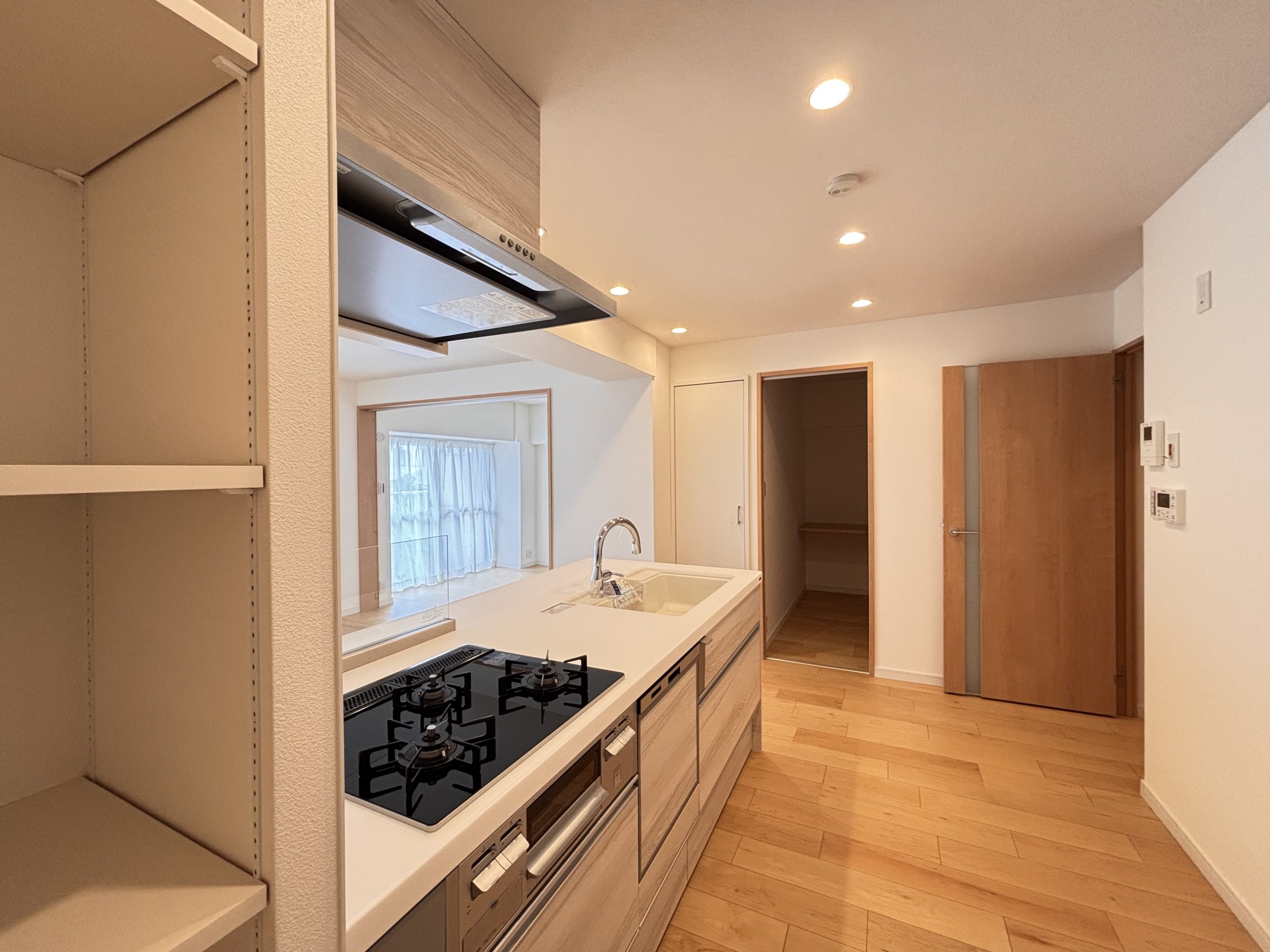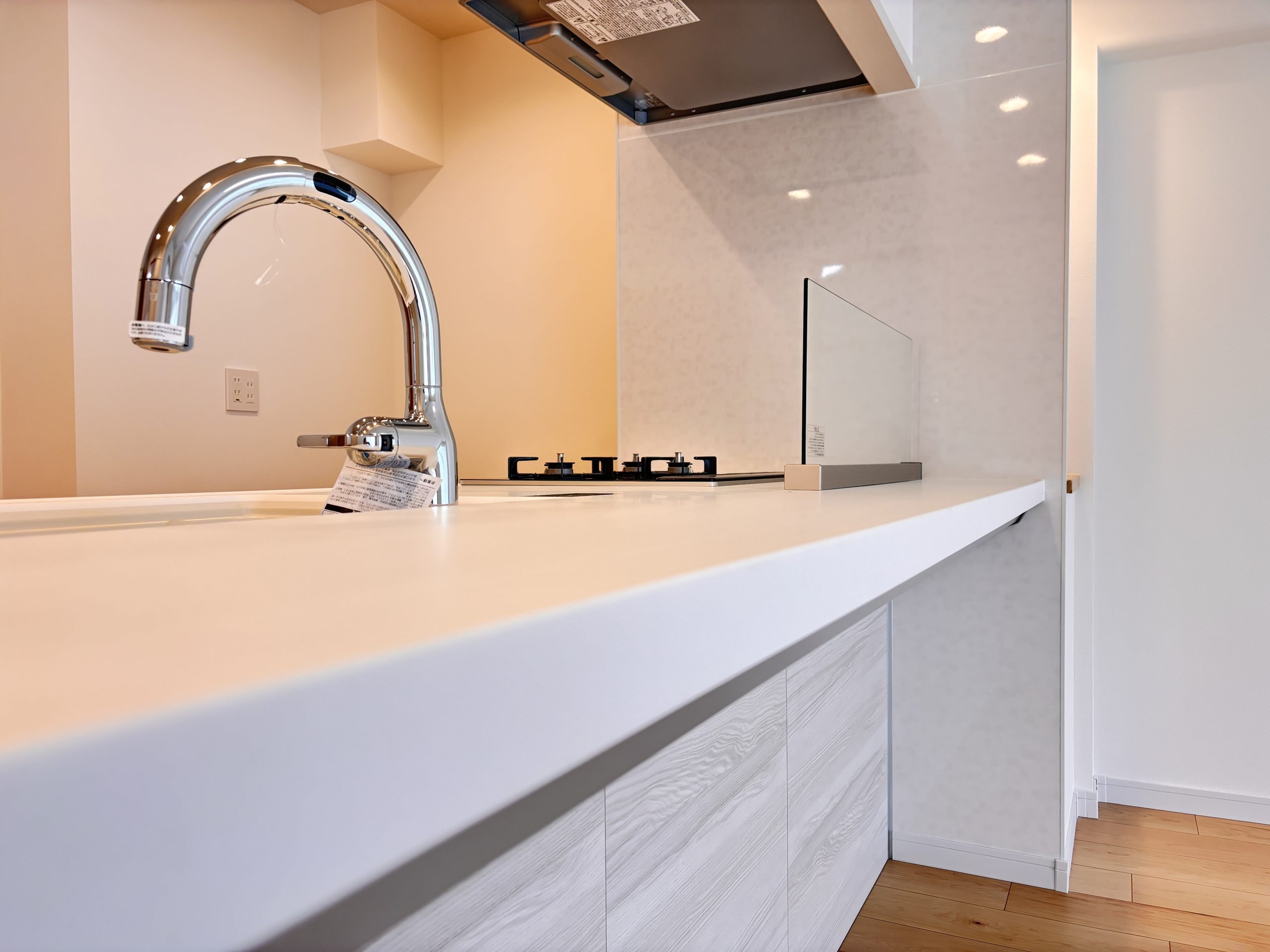 キッチンはペニンシュラ型。料理しながら会話もできるし、