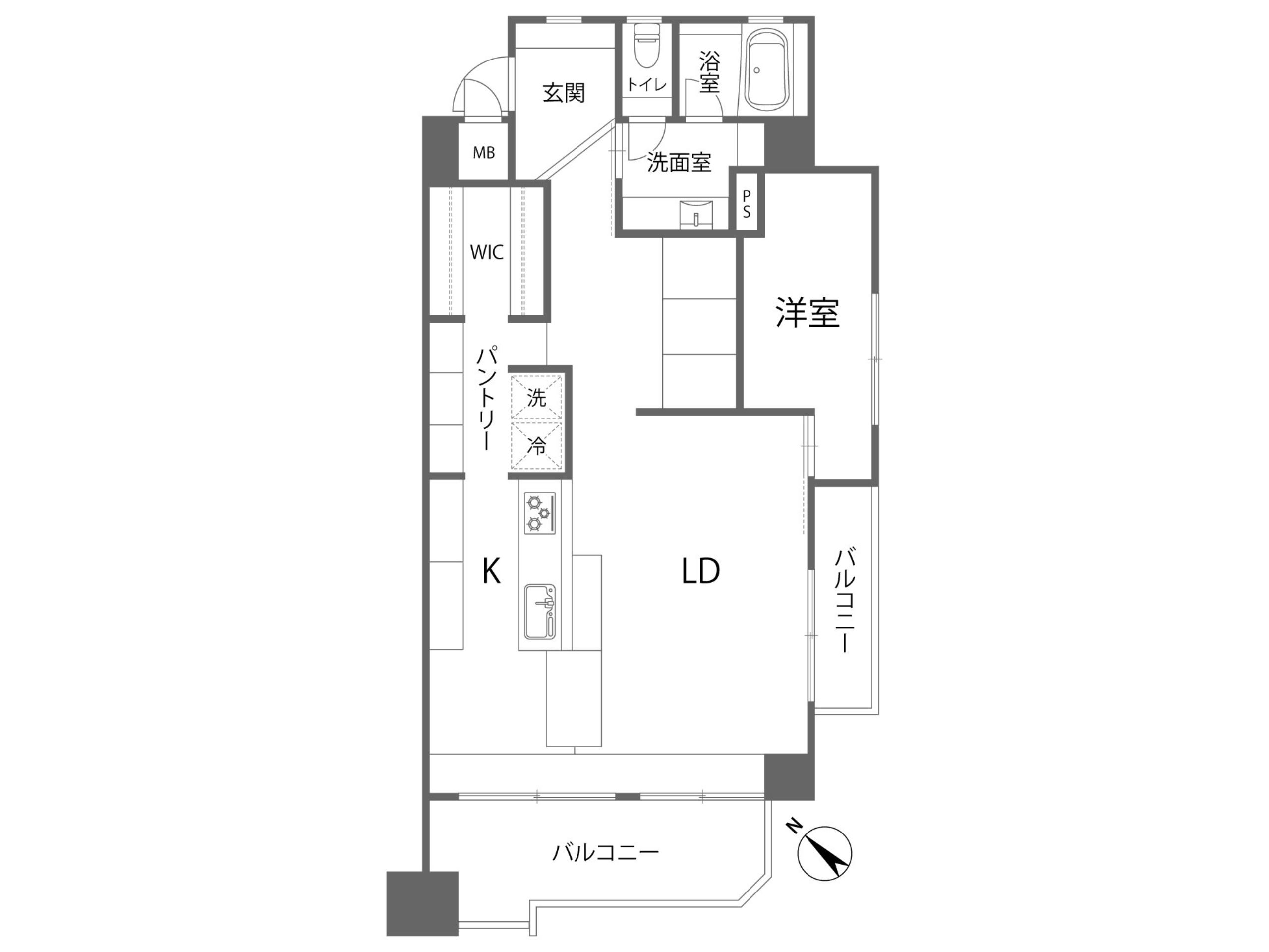 キッチンからパントリー、そしてウォークインクローゼットへ。