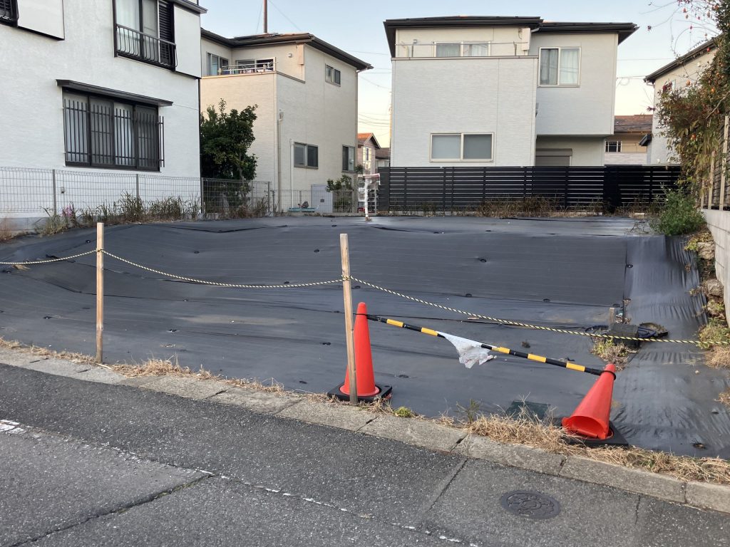 南柏駅からバスで4分、柏市中新宿の住宅街にぽつんと更地。
