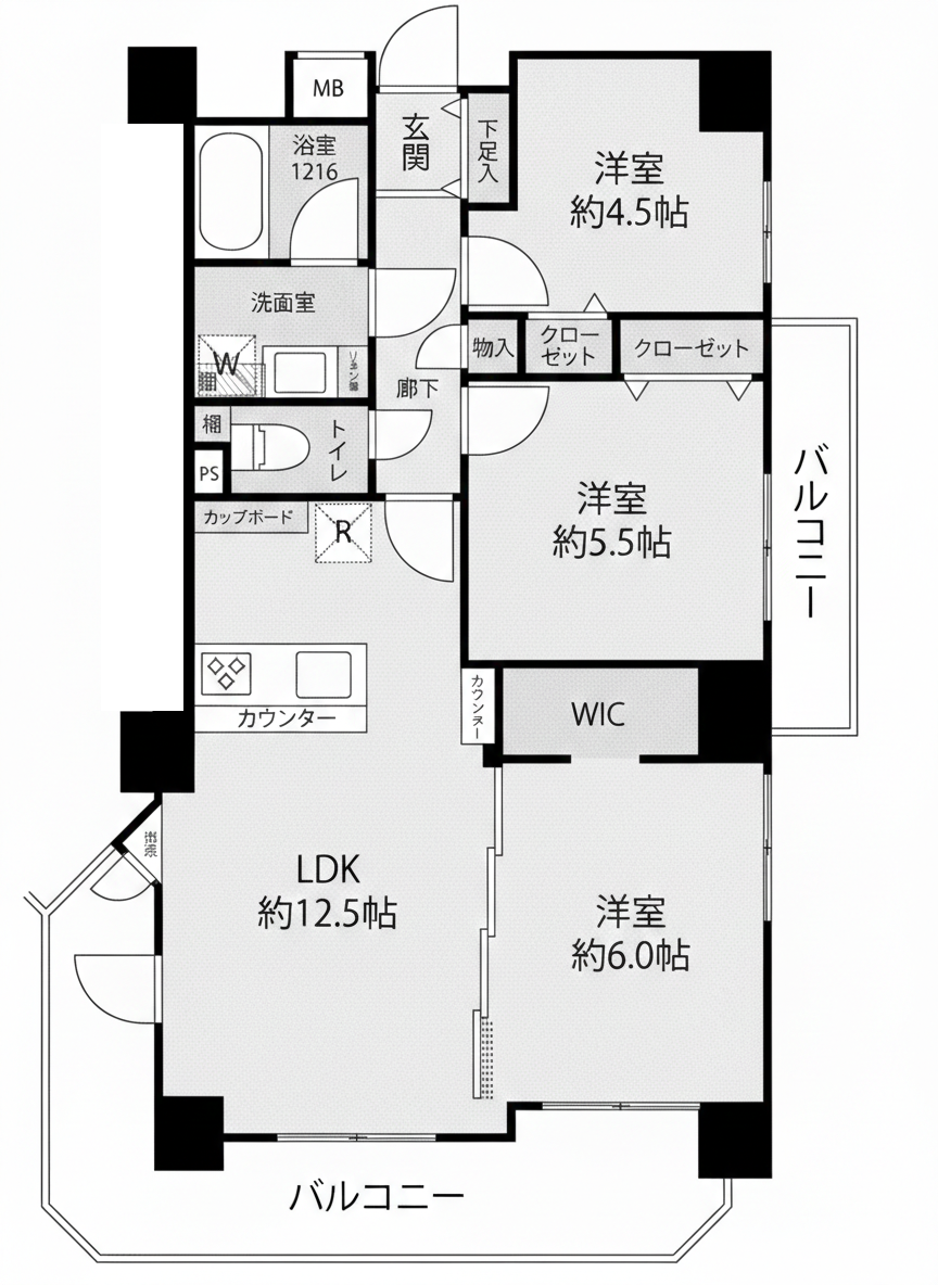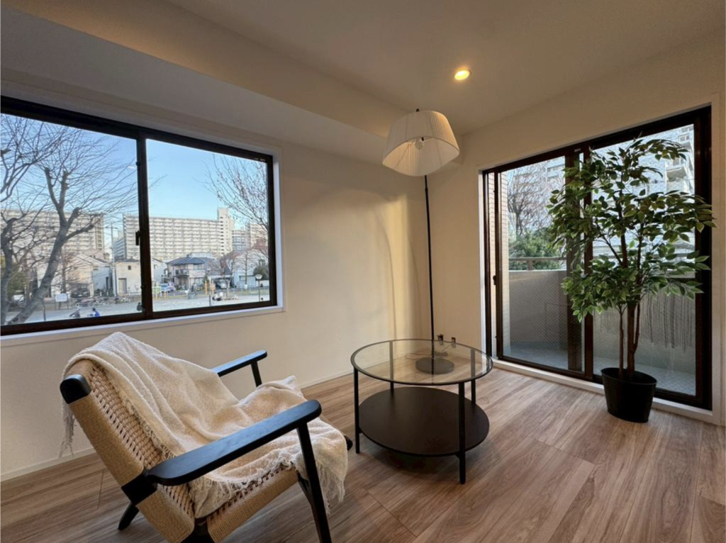 エレベーターを使わなくても大丈夫な2階、角部屋ならではの明るさと抜け感。