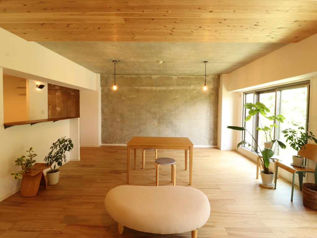 コンクリートの風合いを残しても良いと思いますし、自分好みのクロスを貼っても良いですね。