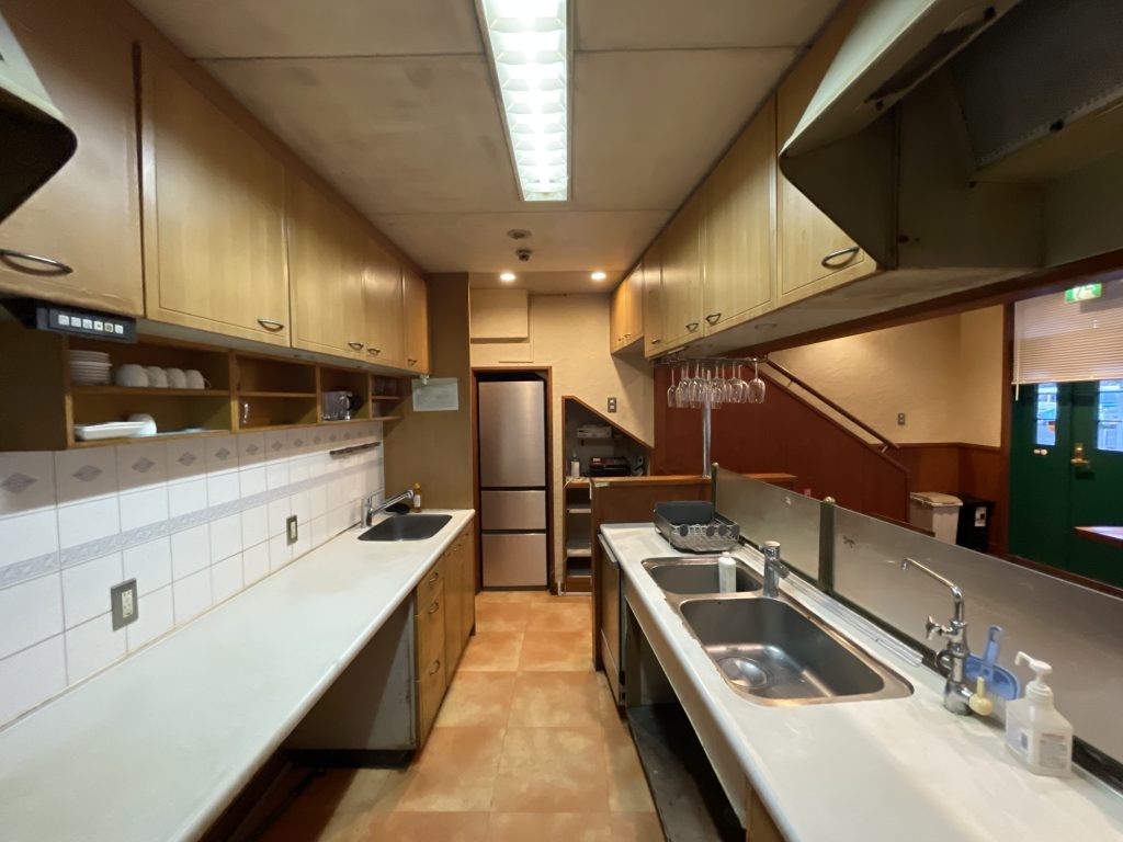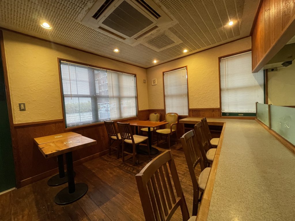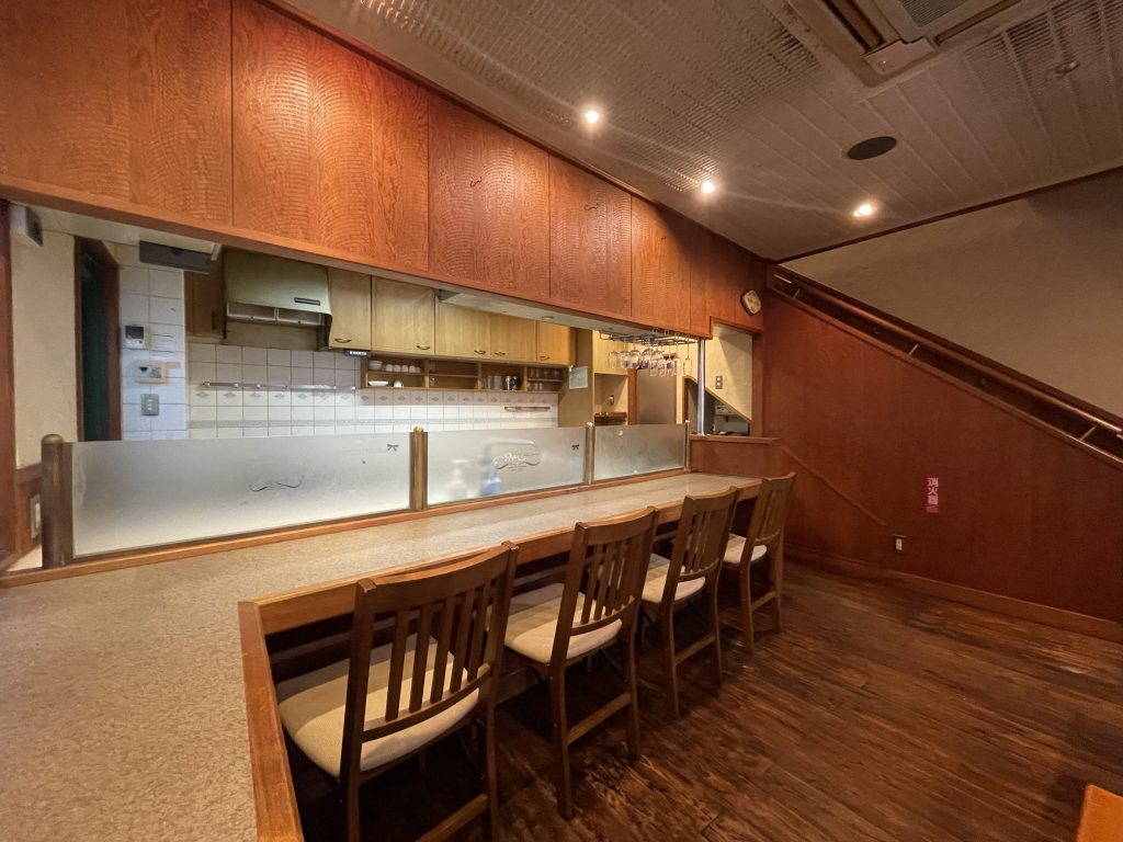 店内には、テーブルや椅子、調理器具などは、前の店の面影をそのまま残しています。