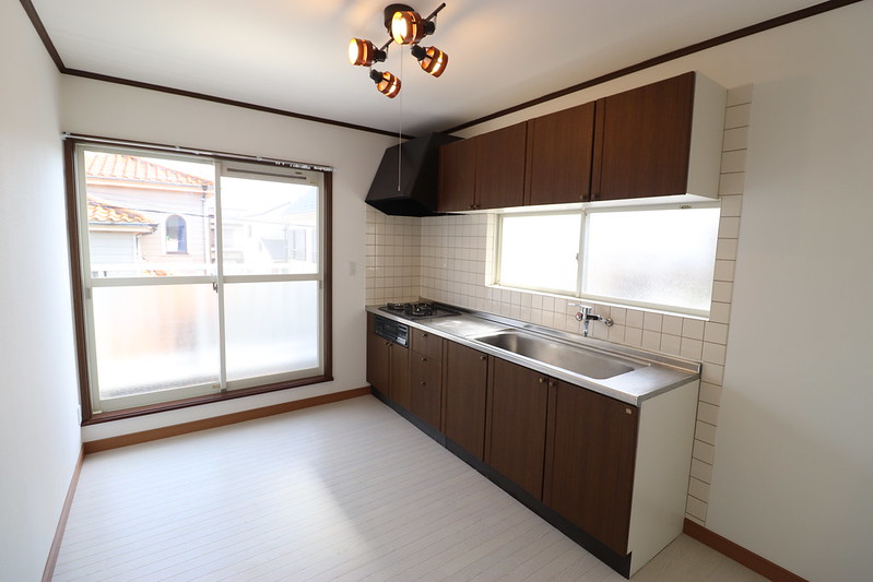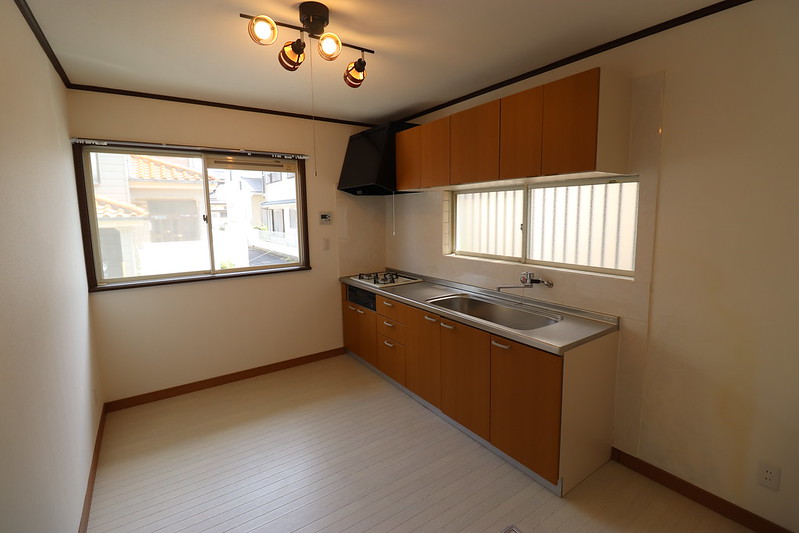 その先の左右にあるのが洋室、そして左の奥にはこちらも広めのダイニングキッチンがあります。