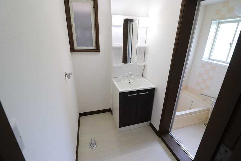 玄関から見て右側の廊下にある洗面台にも窓がついており、風通しがよく明るい印象の家です。
