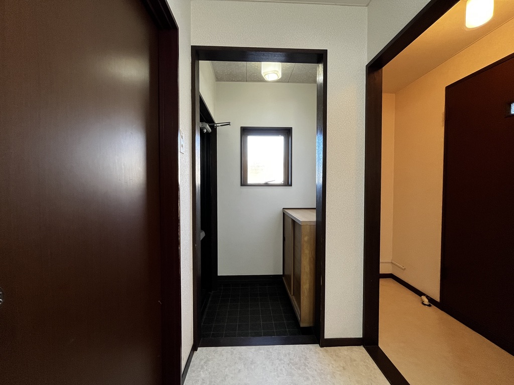 玄関には備え付けの靴箱、廊下突き当たりには手洗い場。廊下左手にはトイレお風呂の水回りセット、右には緩やかに入ってくる光が心地よいキッチンがあります。キッチン横に冷蔵庫を入れておくスペースが設けられてるの、ちょっとしたことですが全体の見た目にすごく影響するのでちゃんと気をつかってくれているんだなあ!と嬉しくなります。